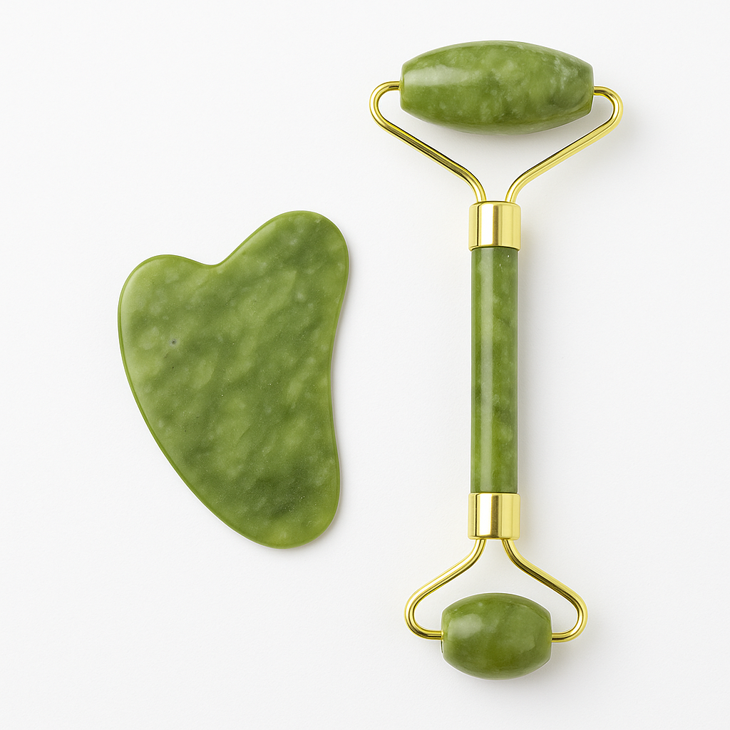Cool, soothe, and depuff your skin in seconds. This dual-ended jade roller boosts circulation, helps reduce puffiness, and improves the absorption of serums or masks — leaving your skin calm, sculpted, and glowing. A must-have in any glow ritual.