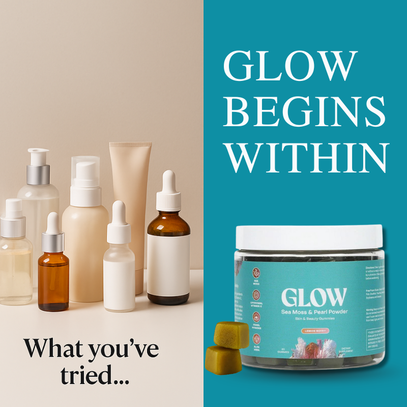Most skincare routines only treat the surface. That’s why GLOW Gummies work from the inside out — blending Irish Sea Moss, Pearl Powder, Aloe Vera, and Liposomal Vitamin C to hydrate, protect, and brighten your skin at the cellular level.