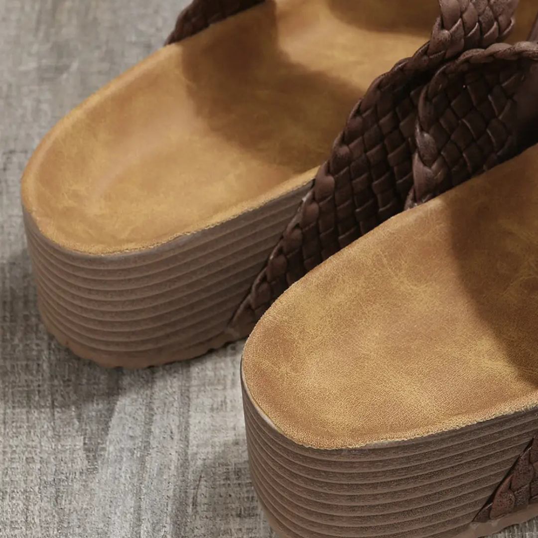 Step into elegance and comfort with our Sophia – PU Leather Slip-On Sandals. Proudly crafted from high-quality PU leather and adorned with a unique braided design, these sandals are the epitome of sophistication, perfect for elevating any ensemble.